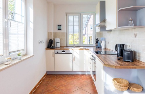 This child-friendly apartment on the Baltic Sea has a spacious living and dining area and is suitable for allergy sufferers. Facilities In this apartment you will find everything you need for a Baltic holiday with baby. The open kitchen, the adjoining bedroom for 2 persons and the terrace offer enough space for small families. In the kitchen you will find a kettle, a coffee machine, a stove and a fridge, as well as a dishwasher. For small guests, a high chair and a travel cot are available. The modern equipment with flatscreen TV, stereo and DVD player is provided for good entertainment. The apartment has a parking space for your car. Bicycles can be rented for a fee. Details This non-smoking apartment on the Baltic Sea is equally suitable for small families as, by the ground-floor location, for seniors and handicapped people. The property is also well suited for allergy sufferers. The underfloor heating ensures special cosiness. In the apartment no pets are allowed. Booking information The price is for the occupancy of two persons incl. Utilities and bed linen. Towels are not included. Towel sets can be booked for € 9.00 per set. The settlement of the tourist tax is on arrival. Dear guests, please note that in the main season from 01. 07.-31. 08. gapless bookings are mandatory. You can view the current occupancy calendar at any time. Room service - includes bed linen freshly made beds for all guests over 4 years, the final cleaning after departure and a Fewo starter package including dishwasher tablets, dish soap, toilet paper, garbage bags, etc. Tourist tax - the settlement of the tourist tax is on the beach.