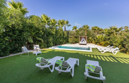 Welcome to this impressive villa located in a quiet and rural environment, near the town of Algorfa, very well connected to Highway AP 7, 15 minutes from the beautiful beaches of Guardmar del Segura and 5 minutes from the fantastic La Finca Golf course, perfect for those seeking luxury and comfort. This spacious property has all the necessary amenities for an unforgettable vacation.Upon entering the villa, you will be greeted by an elegant interior living room, tastefully decorated and equipped with furniture. The air conditioning provides a cool and pleasant environment at all times. Accommodating up to 19 guests, this villa is ideal for family getaways or gatherings with friends.The luxury extends to the outdoor area, where you will find a private pool surrounded by gardens. Bask in the sun on a comfortable Balinese bed or relax in the outdoor lounge while enjoying a pleasant breeze. A modern barbecue will allow you to organize delicious barbecues for your guests.For entertainment lovers, the villa has two living rooms, one inside and one outside. Both spaces are designed to offer comfort and style. In addition, there is a play area where both children and adults can enjoy various activities.If you prefer a quieter atmosphere, head to the indoor lounge, where you'll find an elegant pool table to enjoy exciting games. The spacious gardens offer a beautiful setting for strolling and relaxing.For those traveling by car, the villa has a large garage with capacity for 4 vehicles, providing comfort and security.This villa invites you to enjoy life in an exclusive and relaxed environment. We waitTo facilitate your arrival, a few days before your arrival you will receive a request to make a security deposit online. This security deposit will not be debited or debited from your bank account. This procedure is authorised by your booking platform.
