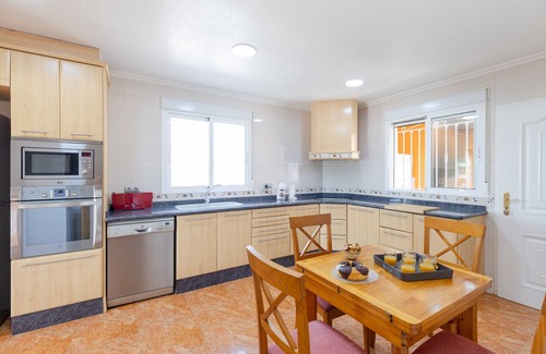You can enjoy an independent villa with a private pool, located in Crevillente, with 3 bedrooms and capacity for 8 guests and two bathrooms.Cosy 150 m² villa, fully equipped, with views of the mountains and the garden, completely renovated and tastefully furnished. Fully fenced plot with large garden and private pool.It is located in the countryside, where you can enjoy the tranquility, with its private pool and barbecue, it is ideal for spending well-deserved holidays with family or friends, the city is 1 km away. We recommend a car to go on excursions, do not miss a visit to the Tabarca Island, from Santa Pola you can take the Ferry and you can spend a wonderful day on the Island, take the opportunity to eat a good Caldero of fresh fish. 3 Bedrooms 2 Bathrooms 9 Beds Living room Pool Garden Wi-Fi Barbecue Central heating Independent air conditioningThe SpaceFeel at home in this fully air-conditioned villa located in the city of Crevillente.This villa is perfect for a large group ready to rest and relax while exploring the surrounding city!Its fully furnished living and sleeping spaces will allow you and your group to relax after a long day exploring the city.The fully equipped kitchen allows you to enjoy homemade meals away from home and the large dining room allows you to enjoy each meal together as a group and family.You won't want to miss the outdoor patio space!The backyard pool area is the perfect place to swim and cool off while sunbathing and relaxing in our outdoor lounge chairs.The modern pool construction and modern chairs allow for the best moments of relaxation. LIVING ROOM You'll feel right at home! Take a moment to relax, sink into the comfortable sofa, and plan your next adventures. Comfortable furniture TV Fireplace Large Table High-speed Wi-Fi Comfortable sofa with cushions (can be converted into an extra double bed) KITCHEN DINING Whether you're preparing breakfast, lunch, or dinner, this independent kitchen offers excellent appliances for everyone. Enjoy a homemade meal away from home! Fridge Microwave Oven Freezer Cutlery Utensils Coffee maker Toaster Hot water kettle Juicer Dishwasher Dishes (cups, plates, bowls, pots and pans) Cooking utensils Dining table for 6 people Small table for 2 BEDROOM LAYOUT 3 BEDROOMS After an exciting day exploring the city, these comfortable rooms await your arrival when it's time to rest and relax. Bedroom 1 (1 double bed and 1 single bed) Bedroom 2 (3 single beds) Bedroom 3 (2 single beds) Premium mattresses, bedding, sheets and pillows Nightstands with reading lamps Spacious dressers with drawers TVs BATHROOMS Both bathrooms have clean towels and essential hygiene items to ensure a worry-free stay. Bathtub Flush shower Toilets Hairdryer Mirror Vanity OUTDOOR Enjoy the beautiful private outdoor area with these unique amenities! These outdoor items will help you maximize your outdoor time in this beautiful villa! Pool Garden Garden furniture Barbecue Terrace with large tableGuest AccessThe villa is exclusively yours, without interruption during your stay, so relax, rest and make yourself at home.In addition to the amenities already mentioned, our house also