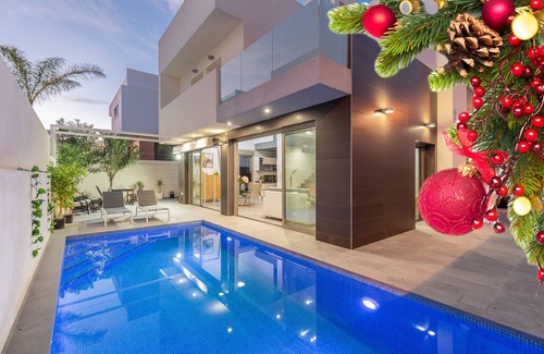 Step into the newly built modern and luxurious 4BR 2Bath villa, piece of modern architecture, which draws inspiration from contemporary California living and the local traditional style. This spacious villa is comfortable to live in, totally new and with a decoration that makes everyone fall in love. The villa in Pilar de la Horadada has 4 bedroom(s) and a capacity for 8 people, surely you will agree, it is ideal to spend a beautiful vacation, offering a high-end getaway located on the sun-soaked Mil Palmeras, close to places of interest.