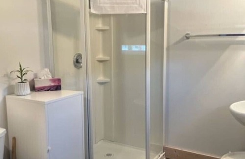 Discover the perfect blend of comfort and convenience at The Fieldstone Guesthouse, centrally located within walking distance of shops, restaurants, and cafes. This open-concept suite is thoughtfully designed to make you feel right at home, featuring two Queen-sized beds adorned with soft duvets and plush pillows for a restful night’s sleep.