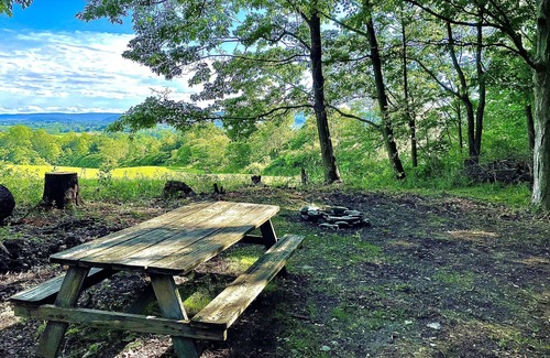 Camp site with amazing view and privacy. You will be camping on the 85 acre Galusha Farm compound with trails and stream with waterfalls a short hike away Fire pit, picnic table and non potable water. We provide a private porta potty and take care of the garbage. Hike 1 mile with your gear or drive to site with your SUV or all wheel drive vehicle through the wooded forest. 10 minutes to Historic Watkins Glenn and the southern gateway to The Finger Lakes. Wineries breweries and recreation await you or just chill.