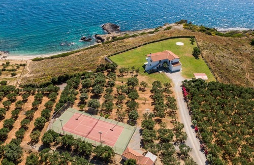 Finisia House Two is situated on a private stretch near Tigania Beach, just steps from your front door. Overlooking the beach, and an amazing ocean view, Finisia’s big garden is the perfect place to cool off with an afternoon drink. If you feel like staying active, there’s a state of art area in the property with olive trees for a nice walk and a tennis court, to keep you busy. And, there is a large dining table at the balcony as well to enjoy a fine dining.