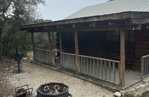 Welcome to the Honeycomb Hideout!! An adorable 2-bedroom 1 bath cabin called "Fir Deer Life". With cozy spaces and charming decor, this cabin is perfect for a relaxing getaway. Bdrm 1 features a queen size bed. Bdrm 2 features three beds - 1 full, and 2 twin beds. A full kitchen with dining table, living room with a fireplace and two futon beds - 1 full, 1 twin. Step outside to the covered porch and relax in the rocking chairs. Seating area with fire pit, bbq grill and table-bench area are on the side patio. Close to the Frio river but away from the crowds and season rush.