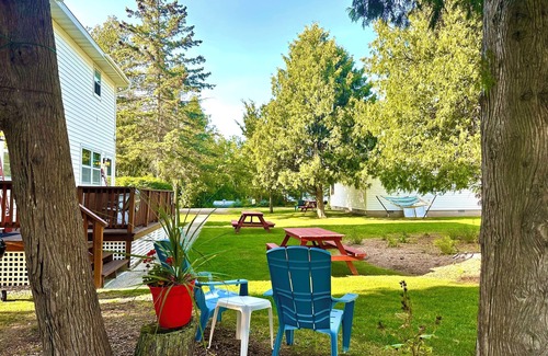 From your cottage you can enjoy a starry night with adult beverages or mornings with beautiful birdsongs and hot coffee. Walk two minutes to the Ephraim beach for some sun, sand, swim and sunsets. Join the other guests in our surrounding cottages for stories, laughter and smores around the fire pit which boasts seating for 12 in sturdy rockers that support up to 350lbs (plus a bench that supports up to 500 lbs).