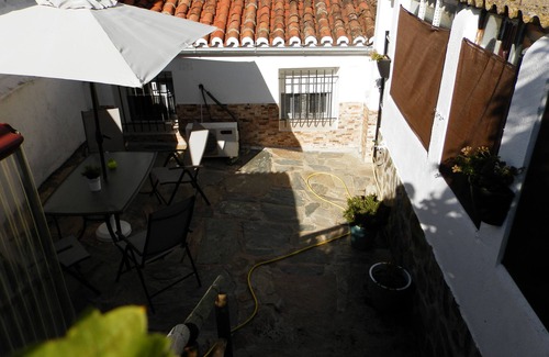 Ground floor apartment in the historic center of Cáceres just 2 minutes from the Plaza Mayor, ideal location to visit the city on foot. Warm house in winter and cool in summer, with ceiling fans in rooms. Recently renovated, it has 2 rooms with vaulted ceilings, full kitchen, living room, bathroom, air conditioning, heating, bedding, towels, gel, shampoo and hairdryer. At guests' disposal, the house has a private patio with barbecue and garden furniture from which you access a garden with olive trees and fruit trees where you can enjoy wonderful evenings.
