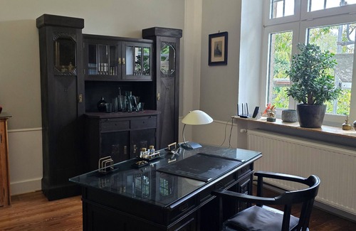 A sandstone house (villa) built in 1907 that has been lovingly renovated with high ceilings, some stucco, wooden floors, and a beautiful garden to relax in. The holiday apartment on the ground floor (a self-contained apartment) has high-quality furnishings and is partly equipped with classic furniture. In the kitchen you will find all utensils.