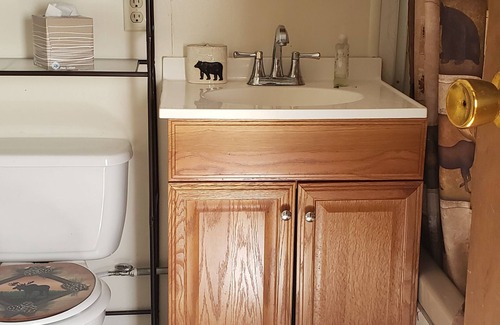 This 2 bedroom one bath mobile home is decorated with a rustic themed decor.Great view of the backwaters of the Mississippi River from the deck.Watch Eagles Soar or trains pass by. This unit is fully furnished Features Wifi and roku TV towels bedding paper product. Kitchen features stove fridge and microwave coffeemaker and everything you need for meal prep. Fire pit and grill available for your outdoor enjoyment.