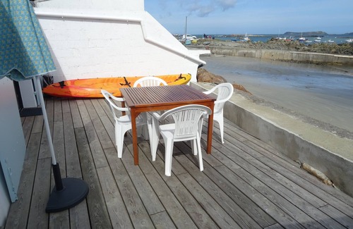 Exceptional location. In a small fishing port, beach house with direct access to the sea from the terrace. Sea view of all rooms- Fully equipped (including washing machine-dishwasher-Wifi). Sailing school (paddle, kayak, windsurfing, optimist, etc. ) at 50 meters-Fishmongering-restaurants at 200 meters-At the edge of GR34-fishing on foot-Leisure activities at sea, countryside or cultural multiple within a radius of 15kms - Possibility of availability of bed linen and toilet (15€/week for bed 2 per. 12€/week for bed one person, 5€/pers per week for toilet linen) -End of stay cleaning on request: 50€-Deposit of a security check of 400€ on arrival (not cashed). Reception of holidaymakers by the owners (advice, good addresses, etc.).