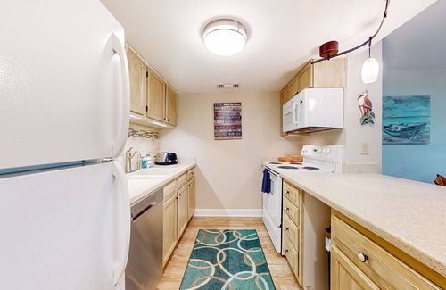 This retreat has been completely updated as of early 2022, with new flooring, beds, dishwasher, paint, and lighting throughout the condo! The living area invites you to spread out comfortably and watch fun shows and movies on the TV with cable. Prepare culinary masterpieces in the well-appointed kitchen, complete with all the essentials!