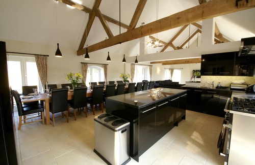 Awarded Five Stars and a Gold Award every year since 2010, Brazenhall Barn is a luxury barn conversion with great facilities. The Barn sleeps 14 and the Lodge Sleeps 6 with the option of two temporary beds but there is space for dining both inside and out for 22 - The Barn can be hired with the Lodge for larger parties. The Barn has 7 bedrooms and the Lodge 3. Int the barn, there is an additional TV/Children's room. The whole property is surrounded by summer meadows which are yours to use during your stay. We offer a catering service for formal dinners or for food on arrival which can be waiting for you in fridge. There is free WiFi throughout, so keeping in touch and finding out what the local area has to offer couldn’t be easier. Indeed you can do some online shopping from the local supermarket (and yes, they deliver!) or book yourselves into one of the many local attractions.