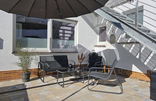 There is a parking space for bicycles. The apartment has a shared terrace where you can relax with a cold drink after a busy day in Frankenberg's old town or the surrounding area. Lounge furniture and seating groups offer enough space for large groups. A charcoal grill with accessories is also available.