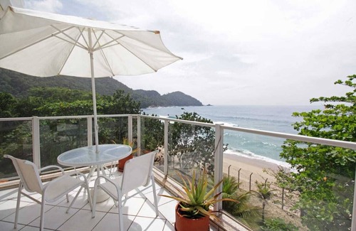 Duplex penthouse in the only development of this size on this beach, breathtaking panoramic view, prime location, surrounded by mountains and facing the sea, airy with refreshing sea breeze 24 hours a day, the property being a duplex is divided as follows: lower dining room with open concept kitchen, 3 person suite and another 3 person room with attached social bathroom, to access the upper floor, a spiral staircase is used, where is the living room TV with double sofa bed, a nice and large balcony with panoramic sea view and another suite with double bed, all rooms have ceiling fans, full kitchen with all appliances and utensils, in the common area of the building, games room with ping pong, billiards and geek tables, swimming pool facing the red beach, considered one of the cleanest in Ubatuba, and very well attended, barbecue, dry sauna and vap or and showers, a huge grassy garden facing the beach, private 2-car covered garage plus a parking space for an unmarked third vehicle. Only families of these 8 existing apartments can enjoy this unique and privileged development founded in this one of the noblest regions of Ubatuba.