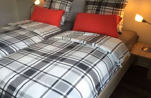 Our top floor apartments (2nd Floor) are modern. They have well-equipped bedrooms with lots of storage space, good reading lamps and blackout curtains.