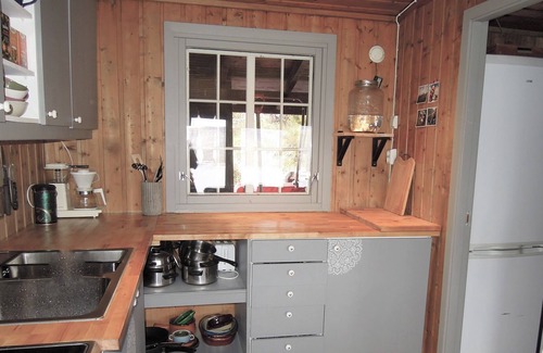 It's a charming but simple wooden cottage with two bedrooms. Large windows facing east - early birds can watch the sunrise from the living room. There is a well equipped kitchen and a comfortable bathroom, and an outhouse. There is a high quality sound system with Dali speakers for you to enjoy, (Bluetooth connection). During this spring there will be several upgrades - a large window in the main bedroom and another in the living room. Pictures will come as soon as finished.