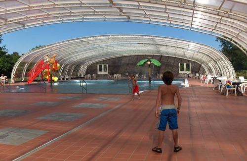 Yes, this Forest Hideaway with Fireplace has a swimming pool. Check the Facility Overview section for details about the pool and other available facilities.
