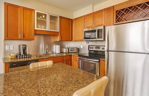 Imagine sipping morning coffee beside a soaring 16-ft glass wall. The queen loft bedroom offers a snug hideaway, and the bathroom’s spa tub invites relaxation. Whip up meals in a fully stocked kitchen, then unwind on the private balcony as the sun sets over the park.
