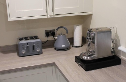 The kitchen/dining area includes a fully equipped kitchen & a large dining table to seat 8 people and a large flat screen Smart TV. There is a separate living room which includes comfortable sofas and a Smart TV.