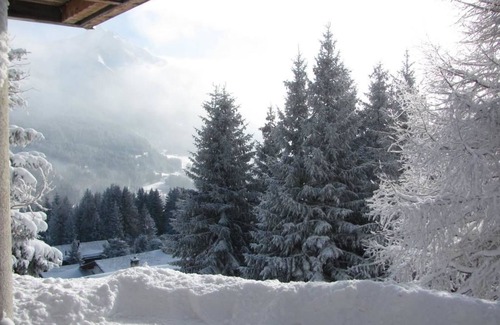 50 m2. More information by the provider: Lower apartment of a small two-family house, last house at the end of a private road, very quiet with a wonderful view to the valley, not far from the slopes, surrounded by meadows and trees, large veranda. The apartment has two bedrooms, a bathroom with shower and washing machine, a new, modern kitchen with a large dining table, an iron stove for open fire, a living room with TV and internet.
