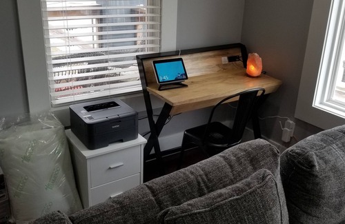 Spacious smart home with attached 2X garage - great for groups, families, and workers. 3 TV (40/49/70") entertainment centers with WIFI/air channels. Foam mattress beds, 2 foam sofa sleepers, and 2 air mattresses. Pedestal charcoal grill and tools (new). Open area 2nd floor with desk, printer, kitchen, and patio. Lots of cookware and silverware. Free coffee. Drive 9 min to DT and convention center. Walk 10 min to dining/music in Fountain Square.