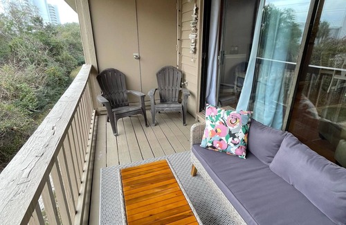 The entire condo has Saltillo tile throughout and features cheerful colors. Framed photographs of local landmarks are displayed throughout the unit. Washing Machine and dryer is located in laundry room just off the master bedroom downstairs.