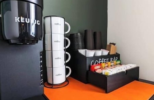 - A fully stocked kitchen (hello, pots, pans, and the holy grail—a Keurig coffee maker)? **Yes!