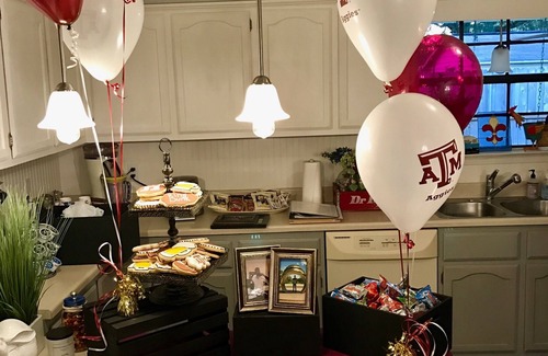 Aggie Ring Dunk celebrations available with ring dunk stage and Aggie decor. Must pay event cleaning fee for events larger than 20. Thank you!