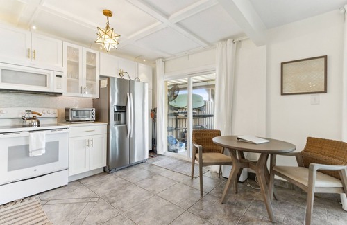 Escape the ordinary and unwind in style on the beautiful beaches of Amelia Island. This home was designed with vacationing in mind! Our first-floor unit, part of Seagate Condos (a small four-unit building that enjoys one of the closest to the ocean lots on Amelia Island!), features 2 bedrooms and 1 bath with extremely comfortable furnishings. The Master boasts Bali inspired decor, equipped with a king size bed and luxury linens/pillows so you can rest the night away. The guest room- a cozy queen with a true, beach cottage feel. Relax in the evenings in the fully upgraded bathroom which features a Jacuzzi tub, marble tile and quartz countertop sink. Enjoy the open concept living room and kitchen showcasing white quartz countertops, new appliances, and white cabinets with lots of light filtering in through the two large glass sliding doors. Relax on our comfy, Pottery Barn sectional backdropped by a beachy shiplap wall and enjoy one of your favorite Netflix films to close out a relaxing day on the beach.
