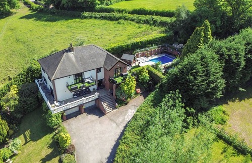 Freshwinds is a remarkable detached property, resting in Ashley near Market Drayton. The property has eight bedrooms; Eight bedrooms: 1 x super-king-size double with TV, private balcony and en-suite bathroom with corner bath, Jacuzzi shower, basin, WC and Bluetooth speakers with 1 x single off from this room, 2 x king-size with TV and private balcony, 1 x king-size with TV, 1 x double with TV, 1 x ground-floor super king-size, 1 x ground-floor double, sleeping 15 guests. The property also comprises a ground-floor bathroom, a shower room, utility, kitchen/diner, sitting room with open fire, oil fired boiler games room, conservatory and garage with table tennis. Football table. 7 Foot pool table. Outside there is ample off-road parking on the driveway, a wrap around terrace, front lawn and extensive, multi-level rear garden with seating areas, hot tub, heated pool, pool house with American-style fridge/freezer, summerhouse with seating, chiminea, unfenced pond and trampoline. Freshwinds is a magnificent property for a large family or group gathering in the Shropshire countryside. This property does not accept stag/ hen parties or similar; property is for families only. Please note: Guests are not permitted to use their own devices to play amplified sound for entertainment purposes as requested by the council, and to please be mindful of surrounding neighbours. Property will be fully decorated at Christmas time including real tree.