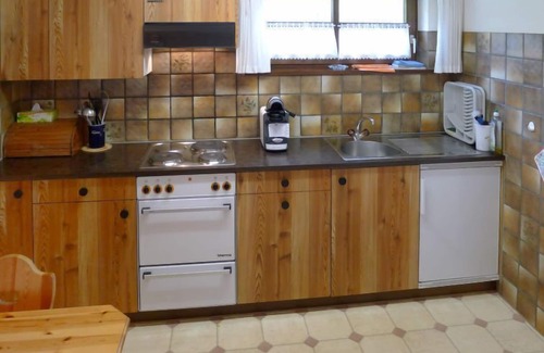 "Fricktalerhuus Apt.1", 3-room apartment 85 m2 on 2nd floor. Simple and cosy furnishings: living/dining room with open-hearth fireplace and satellite TV (flat screen), radio. Exit to the balcony. 1 double bedroom. 1 room with 2 x 2 bunk beds. Open kitchen (3 hot plates, oven, electric coffee machine, raclette grill, fondue Set (cheese)) with dining table. Shower/WC. Balcony. Beautiful view of the mountains, the countryside and the resort. Facilities: baby cot. Internet (WiFi, free). Parking at the house. Please note: non-smokers only. Maximum 1 pet/ dog allowed.