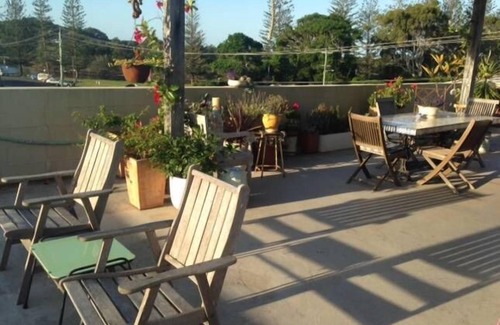 This beautiful apartment is one of two situated in town across the road from the best coffee in Brunz. From the big verandah you can see the Brunswick River so checking for the tides is made easy through the french shutters. Then its less than a minutes' walk to the river or the ocean which is just behind the nature strip. Its a fifteen minute drive to Byron Bay and Blues Festival is practically around the corner.