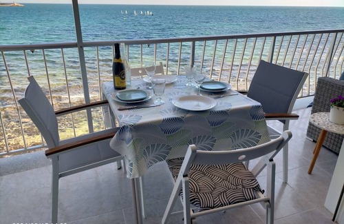Located right next to the large sandy Los Naufrugos Beach (blue flag) and only 10 metres from the sea, our sunny private, apartment is about as close as you can get to the water without getting wet. The apartment is front line with unobstructed views over the sea with only a walkway between the apartment building and the sea. The views are amazing - As soon as you enter the apartment you see the Sea through the large patio doors and windows. Relax on the apartment balcony listen to the sound of the waves as they break on the beach, Watch the boats coming in and out of the harbour and enjoy the view of one of Torrevieja´s most popular beaches. At night you can see the pretty lights of Torrevieja city and Harbour and in the mornings (if you are up early enough) you can see the sun rise over the sea.