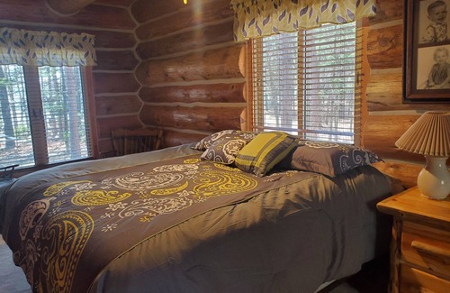 Booking a stay at this hand-hewn full log home you will marvel at the massive beams that hold up the entire home. Each log chosen from our local Indian tribe and scored and put together with the utmost care so that each log has its best face forward.