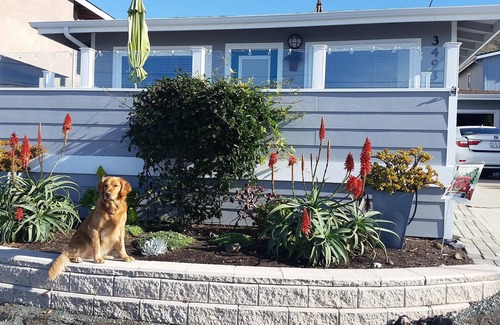 The back yard has a quiet setting with a water fountain, succulent garden, and a gas fire pit for those roasted marshmallows and Smores. A storage shed is available for larger toys like surfboards, bikes, or things that DO NOT GO IN THE HOUSE! The backyard is enclosed and lockable. There is no garage privilege. Owners store rental paraphernalia there. NOTE...We added a space over the garage and carport in 2018 that is the owners residence. It was designed by our architect to elimate any sound transference between floors.
