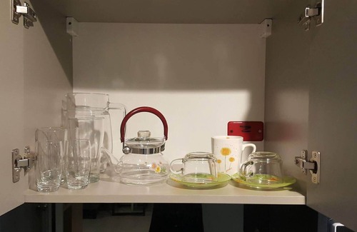 #Kitchen has all utensil needed for the preparation of meals such as rice cooker, microwave, electric frying pan, kettle, Refrigerator, Toaster, Sink, Garbage bin, electric Knife, Spoon, Fork, Plate, Cup, Glass, coffee cup, Bowl, Chop sticks, jug, vacumn cleaner, mop/ clothes line located at balcony