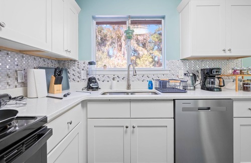 Step into the shared fully fenced backyard for a pet-friendly oasis perfect for stargazing or grill and chills! Situated by scenic marshes and tropical greenery, this home combines convenience with beauty, offering quick access to Savannah’s sights and Tybee’s sandy shores.