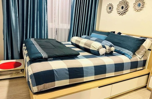 Escape to this enchanting apartment in picturesque Talat Kwan, Mueang Nonthaburi. With two lovely bathrooms featuring a bidet, guests can relax and unwind in comfort. This quaint property also offers amenities like an iron, fitness room, heating, washing machine, WiFi, and AC. We hope you'll enjoy your stay at our apartment.