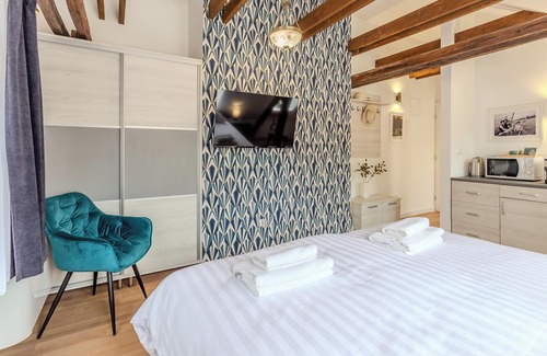 Outside, guests can unwind in the shared garden, which is fenced for privacy. For added comfort and relaxation, the property offers a wellness area in the back building, complete with a jacuzzi, an infrared sauna, and a Finnish sauna. Additional amenities include gated parking with an electric car charging station and a laundry service available at an extra cost. Breakfast can be arranged upon request.