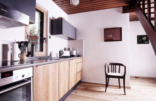 Pure nature and plenty of space, that offers our holiday property. The house is surrounded by a 500 sqm large, well-kept garden with a magnificent old trees. 80-year-old chestnuts, linden trees, beech trees and larches create a unique atmosphere and provide relaxation from the first minute of your holiday. On the large meadow area your children can play football, run to their hearts content or hide.