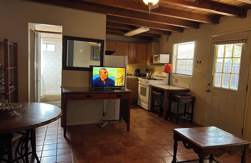 This cozy retreat features a 1 bedroom casita on our 10.5 acre guest ranch. Enjoy hiking, biking and exploring. We’re nestled at the base of the Catalina and Rincon Mountain ranges on a quiet country road. Many conveniences like a washer and dryer, AC, heating,, WiFi, BBQ grill, fire pit and outside patio table and chairs. Whether you're looking for a peaceful getaway or a home base for exploring the city, this wonderful property is the perfect choice for your stay. We look forward to welcoming you to our unique and peaceful place. We’re located just 8 minutes or 2.3 miles to shops, restaurants, national parks, fitness centers, grocery stores and luxury seating movie theaters. Full Kitchen includes refrigerator, gas range/oven, dishwasher, microwave, toaster, coffee pot, dinnerware and cookware. Also included is a full size washer with laundry detergent. Your large yard is fully fenced in for privacy.
