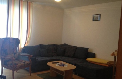 2-room apartment for 3 people including daily free entry to the complete AQACUR with giant tire slide incl. Sauna and brine pool as well as all-day outdoor pool incl. Wave pool. The apartment has a kitchen with complete. Equipped kitchen (microwave, kettle, fridge with freezer), satellite TV, separate bedroom with double bed, sofa bed in the living room, underground parking space, pets are welcome, free WiFi and free use of bus and train. Well-kept apartment, close to the center and yet in the countryside, idyllically situated on a romantic river bend. Washer and dryer for a fee - breakfast / half board in "Goggolori" can be booked - free cot / high chair can be booked Approx. The spa park with motor park, children's playground, mini golf and many walking paths as well as a small café / restaurant is a 5-minute walk away. The Lindner brewery with its own brewery, beer garden and rustic home-style cooking is also a 5-minute walk away.