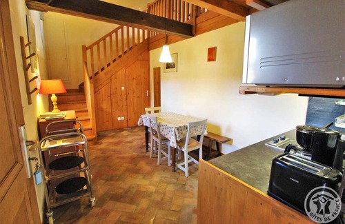 On organic winegrowing estate called 'le Château de Pravins', at the heart of the Beaujolais region, lovely gîte in a character set of listed buildings. Close to the city of Villefranche/Saône. Owners live on site. The gîte has been laid out using eco-friendly, healthy materials (insulating made of hemp, double glazing). Attractive interior combining period features with modern comfort. Accessed via hall with extra facilities (shower room, WC). Ground floor : kitchen with dining area, small shower room/Wc. Upstairs: large mezzanine with lounge area & sleeping area (two 90 X 200 cm beds that can be joined to form double bed), small bedroom (two 80 x 190 cm single beds that can be joined to form queen size bed). Interior courtyard with access to the shared laundry room (washing machine). Private terrasse at the back, wonderful views of the vineyards, hills, plain of Ain, Jura range and Mont Blanc (in fine weather). Shared extensive grounds and courtyard. Parking area. 2nd accommodation for 6 people nearby on property (self-contained). The two accommodations can be rented jointly for family/friends gatherings. Tour and tasting of estate organic wines (free of charge) can be arranged on request for guests interested (wines are labelled AB, Vignobles et Découvertes, Vignerons Indépendants, Géosite/Unesco Géopark).