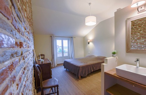 35 minutes from Toulouse and 1h30 from Bordeaux, in the right wing of Château Lavalade, the newly renovated Gîte Manzana combines original charm and modernity. With family or friends, for your events or vacations, you enjoy the peace and the high level of comfort of this place. Accommodating up to 22/24 people, it has 10 bedrooms each with private bath, living room of 59m² and a large dining room-kitchen with double oven, large fridge and large freezer.