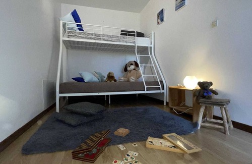 You can relax on the Pyrenees road. You'll be 2 km from the village of Bérat (shops, restaurants, and the Biérataise beer brewery), 6 km from the Savères fishing lake, 10 km from the Via Garona hiking trail (Path of Saint James), the Carbone WakePark spring (water activities), Lake Bure, Lake Sabatouse, and the Tépacap adventure park. You'll be 17 km from one of France's most beautiful villages, Rieux-Volvestre, and 20 km from Muret (train station, Aqualudia, cinema, and Horizon Pyrénées seminar room). You'll enjoy the shared swimming pool, located in the heart of the property, and outdoor games (ping-pong, bowling alley, badminton). The property features a semi-enclosed lawn, paved terrace, small veranda, and private parking. Mini-farm on site with small animals and the donkeys Anémone and Peluche. This cottage is adjacent to the owners' home but has independent access; a second cottage is located on the same property. On the ground floor: living room with kitchenette (microwave, oven, ceramic hob), shower room and toilet, 1 bedroom (1 double bed (140cm). On the first floor: mezzanine living room (DVD-TNT player), 1 children's bedroom (1 double bed and 1 single bunk bed). Electric heating. Wi-Fi internet access.