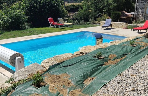 Nancy & Jérôme welcome you to an exceptional 18th century mill full of character steeped in history & carefully restored (formerly a large "mill", of which the imposing "big wheel" remains perfectly visible on the courtyard side, several outbuildings as well as the "ruins" of the old miller's house, located well away from the gîte), partly rehabilitated into a peaceful holiday resort, nestled on the edge of pastures & meadows in the heart of a "mini" rural hamlet a stone's throw from the RCEA (direct, ultra-easy access to amenities or for all excursions). Atypical & totally exotic property, nestled in a "promontory" on the side of a south-facing hill, in the hollow of a bucolic valley of meadows crossed by the Guye (a small river full of fish which once fed the mill), sheltering the famous Charolais cows in season (grazing on the edge of the garden) as well as "Pequeno" the peaceful family pony parked on site. Very comfortable cottage. Literally mini loft in the countryside. Nice volume. Luminous. Warm contemporary character with an "industrial" spirit enhanced by the conservation of an old wall of stone foundations of the original building. Very charming. Cozy & cozy. Private exposed & shaded terrace (depending). Pleasant green and flowery garden (shared) housing a beautiful "panoramic" heated swimming pool (8x4m), a trampoline & a swing. Beautiful unobstructed view of the surrounding hilly countryside. Composition: Gîte adjoining the owners' home (total independence). Wifi (fiber). Wood central heating. Large duplex studio. Raised ground floor (access on one level via a small path going up from the courtyard): living room-kitchen-lounge area (2 p. 140x190cm "rapido" convertible sofa). 1st floor (5 steps): bedroom area on "mezzanine" (double bed 160x200cm), bathroom (shower/Wc). Private terrace + parking. Garden shared with owners with heated swimming pool (8x4m), trampoline and swing. Amenities 8.5 km. Supermarket 9 km.