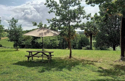 An hour from the Landes coast, in a rural and rejuvenating setting, lulled by the sound of the Adour River, you will be immersed in a hilly setting. Welcome to Chalosse, where you will experience the tranquility of its countryside and indulge in the joys of the activities in this region. You can walk or cycle along the greenway for several kilometers, try the heritage trail, or admire the breathtaking view of the Adour River from the village center. Outside the village, with all amenities less than a kilometer away, come stay at the Fargate cottage. Located on the ground floor and upper floor on private, unfenced grounds, this cottage sleeps 8. A separate, fitted kitchen is equipped with a dishwasher, 4 induction hobs, an electric oven, a refrigerator and freezer, a living room for dining, two bedrooms, each with a double bed (140 cm), and a bathroom with shower and toilet. The accessible wooden staircase leads to two bedrooms, each with a double bed (140 cm), and a living room with a balcony overlooking the countryside, furnished with a sofa, armchairs, a TV area, and a library corner. A very bright bathroom is on this floor, with a bathtub and French doors opening onto a small balcony. For moments of relaxation or exercise, a 50 m² mezzanine with sloping ceilings offers a table football table, a stepper, and an exercise bike, as well as a single bed (90 cm). Garden furniture is available, as well as a barbecue and a ping-pong table. Linens are included. For babies, a travel cot, high chair, and bathtub are available. 2 km away, you can go to the cinema, and 200 m away, you can enjoy an escape game. Here, it's a return to your roots in this land that cultivates its traditions! And at the Fargate gîte, you can gather your whole family, or even your friends.