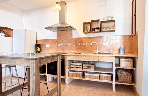 The Joli Gîte Tropézienne in Mirepeisset offers you 70 m² and can accommodate up to 2 people. You will have one bedroom and one bathroom for the duration of your stay. Fully renovated with a tropical atmosphere, the gîte features a south-facing rooftop terrace with no overlooking neighbors. A well-equipped private kitchen is at your disposal, as well as private amenities such as Wi-Fi, air conditioning, television, and a covered terrace. The accommodation also includes a lounge area and a dining room for your comfort.