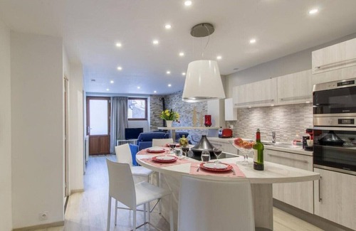 The walk is in 10 minutes. Private terrace. Capacity from 2 to 4 people. Integrated kitchen open to living / dining on the central island with stools, sofa, pellet stove (provided), TV.