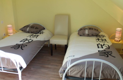 Upstairs, a bedroom with a 160/190 double bed, a bedroom with 2 90/190 single beds.