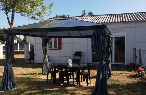 Open since September 1, 2016, fully renovated single storey gite, available for 4 people. It consists of a fitted kitchen, a bathroom with shower and toilet, a large living room with TV DVD player and a sofa bed for 2 people and there is one bedroom with a bed for 2. We also have an extra bed.